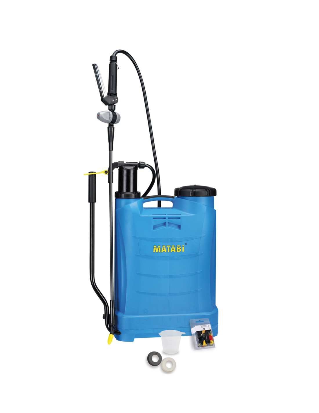 Pulverizador manual de espalda versátil de 16 litros de capacidad, adecuado para su uso extensiones superiores a 400 m². Su manilla de acero inoxidable garantiza un accionamiento fiable y duradero. Incluye una selección de boquillas que permite realizar diferentes tipos de aplicación.